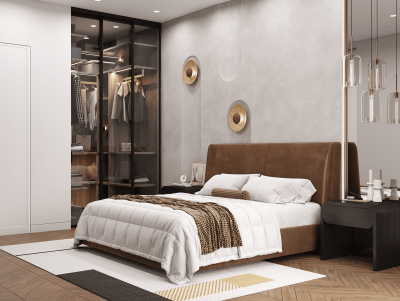 ✔ Минимализм в деталях – компактные прикроватные тумбы и простые формы сохраняют ощущение простора.