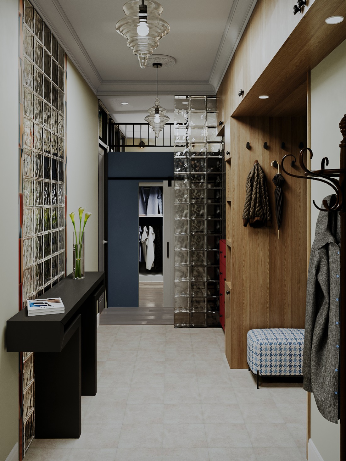 Коридор — не просто проход, а визитная карточка сталинской квартиры. Узкие метры и высокие потолки создают уникальный дизайн-вызов: нужно совместить практичность хранения с сохранением исторического характера.