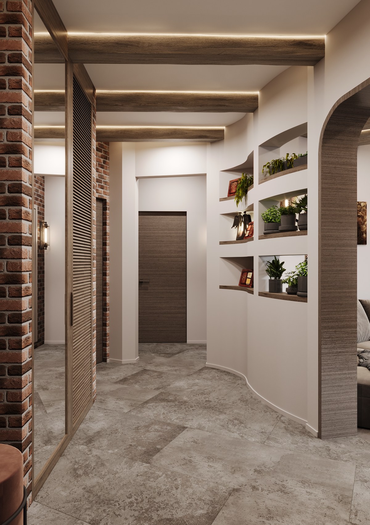В статье разберем, как превратить этот коридор в стильный и функциональный элемент интерьера, используя его архитектурные особенности как главные козыри.