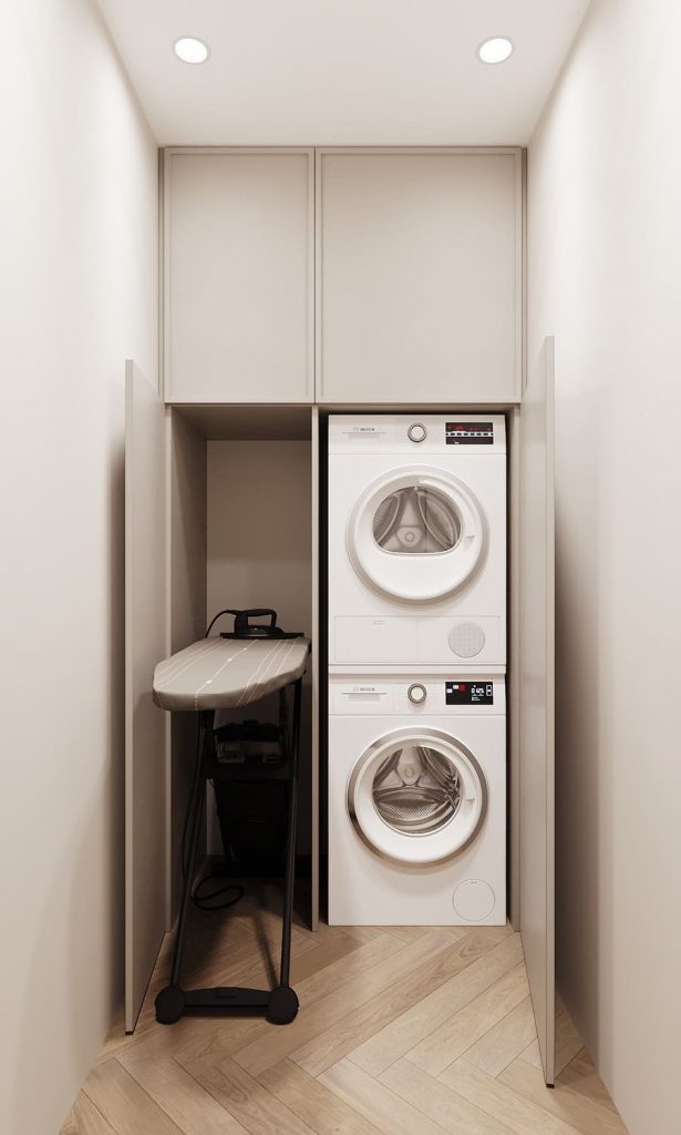 ✔️ Зонируйте пространство – отдельно для стирки, сушки и глажки;