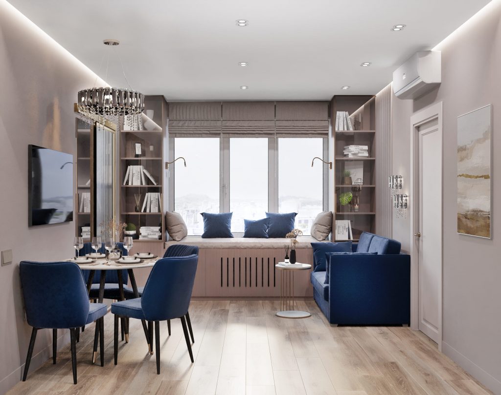 Плюсы: бюджет может быть более гибким, интерьер выглядит свежо и не перегружено.
