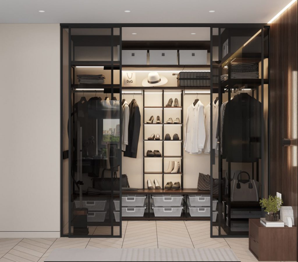 Отличное решение для компактных квартир, поскольку угловая гардеробная занимает минимальное пространство, при этом предоставляя достаточные возможности для хранения вещей. Ее можно разместить в любом углу комнаты, что позволяет максимально использовать свободные уголки и избегать пустых или неудобных участков.