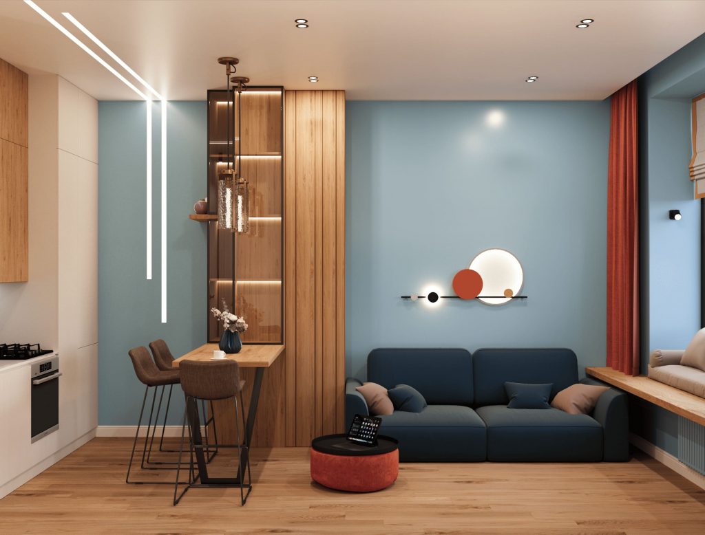 Зонировать пространство в африканском стиле можно с помощью плетёных ширм, деревянных перегородок и живых растений. Ковры с этническими узорами выделят зоны отдыха и столовой, а подвесные светильники из натуральных материалов создадут мягкую локальную подсветку. Для визуального разделения также подойдут разные текстуры стен — декоративная штукатурка и деревянные панели.