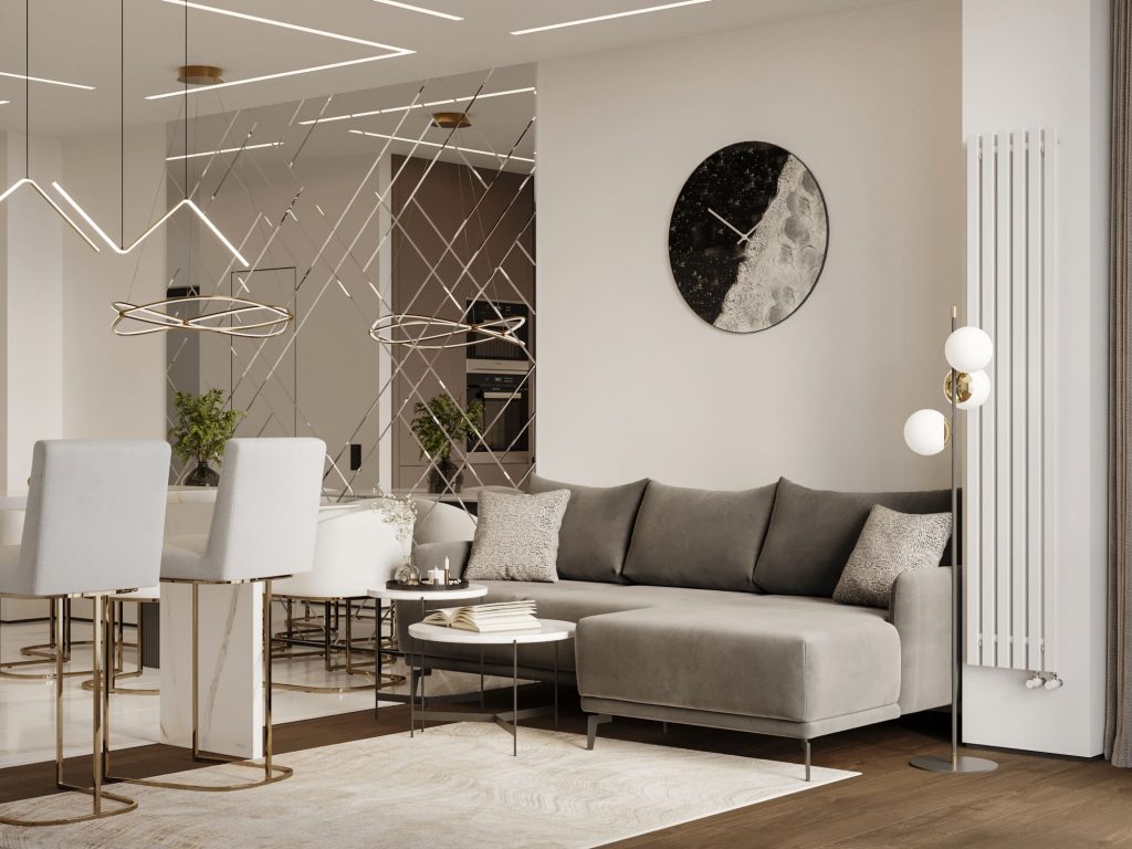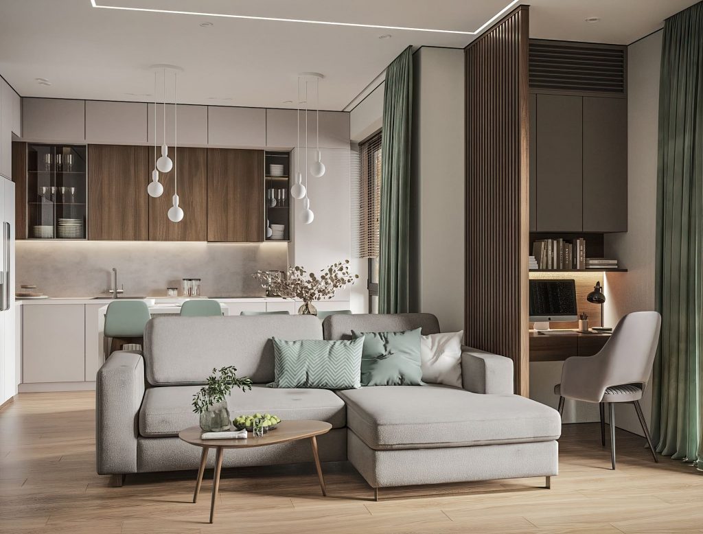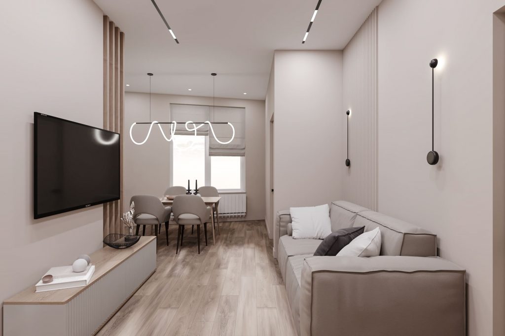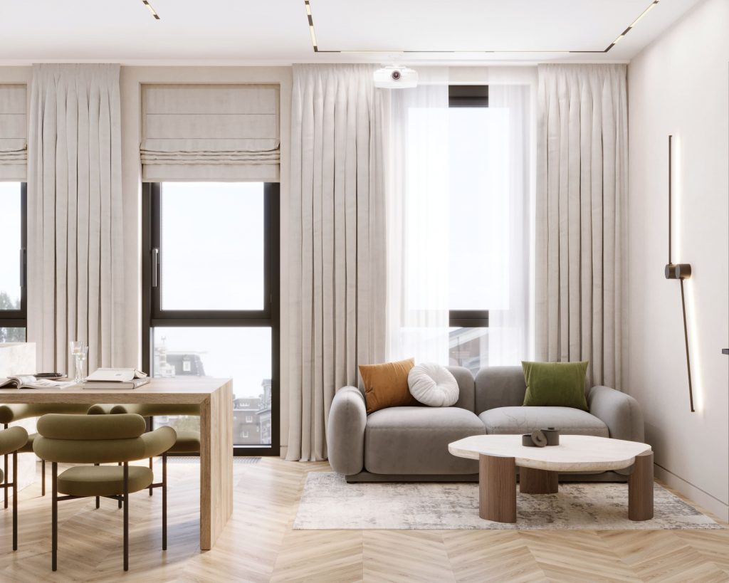 1. Базовые цвета: белый, серый, бежевый — делают пространство светлым, визуально просторным и гармоничным;