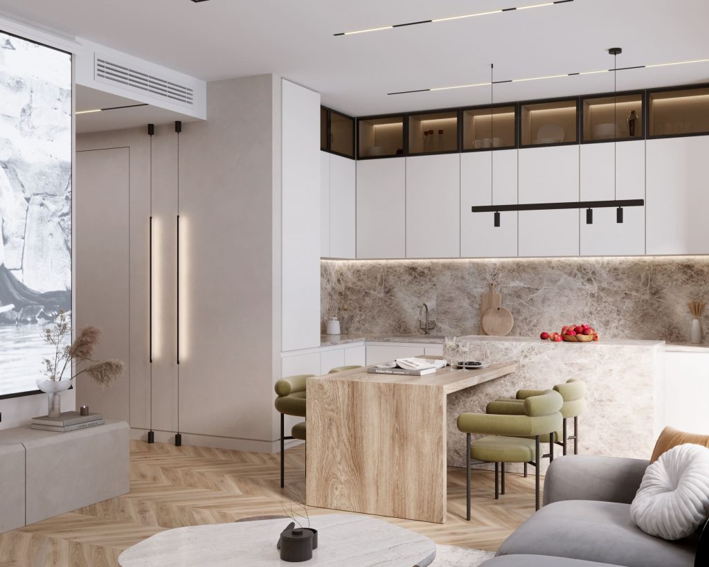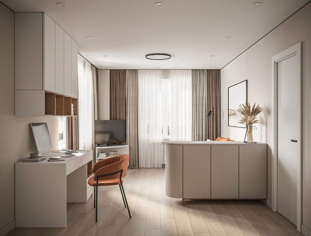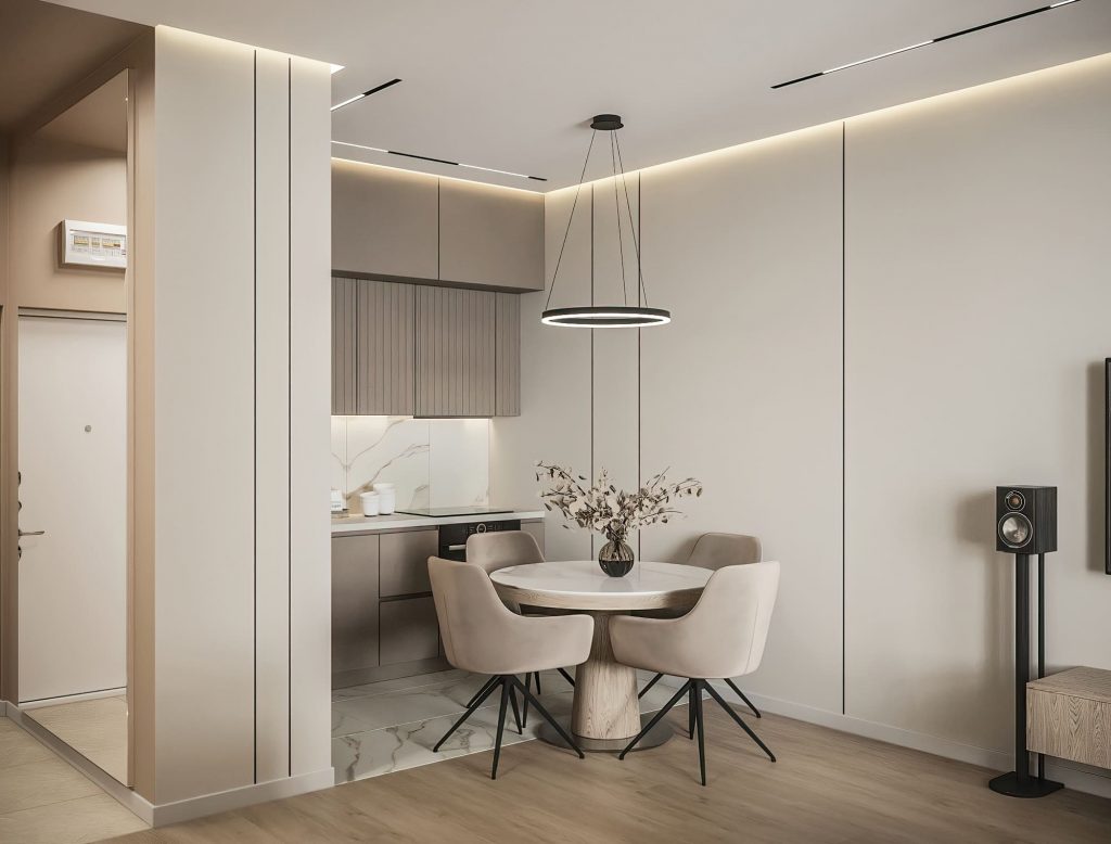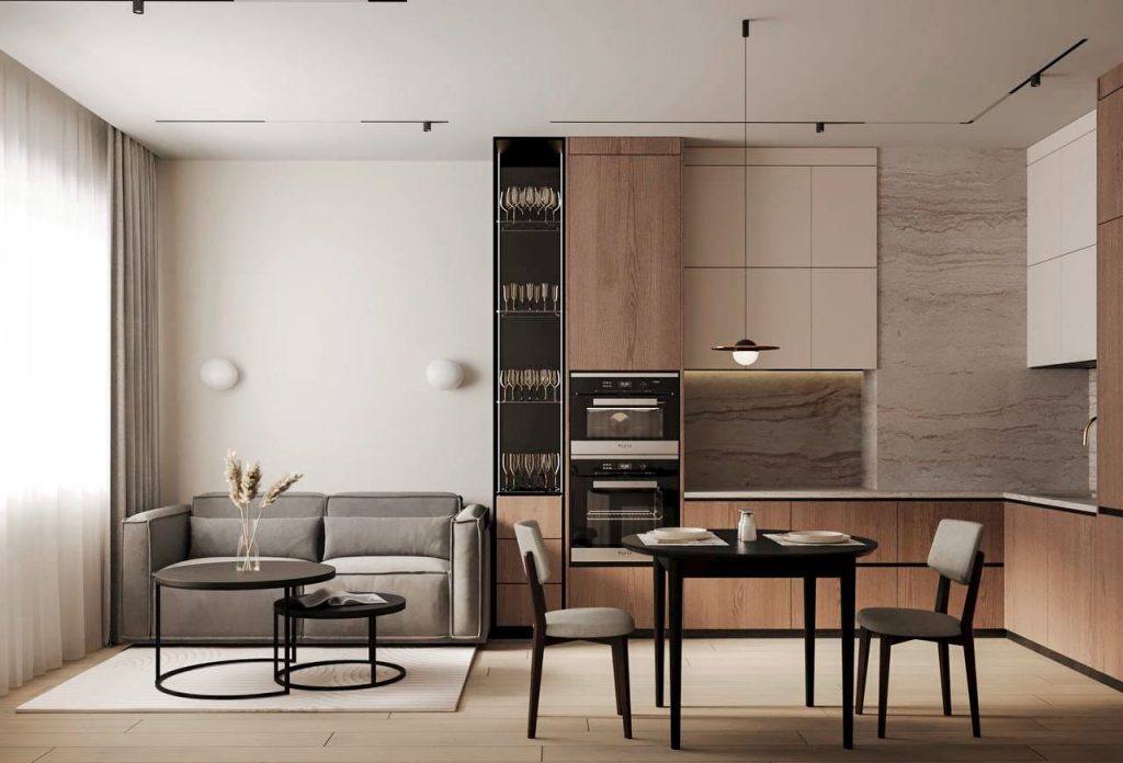 Минимализм основан на нейтральных, спокойных оттенках, создающих чистый и легкий интерьер.
