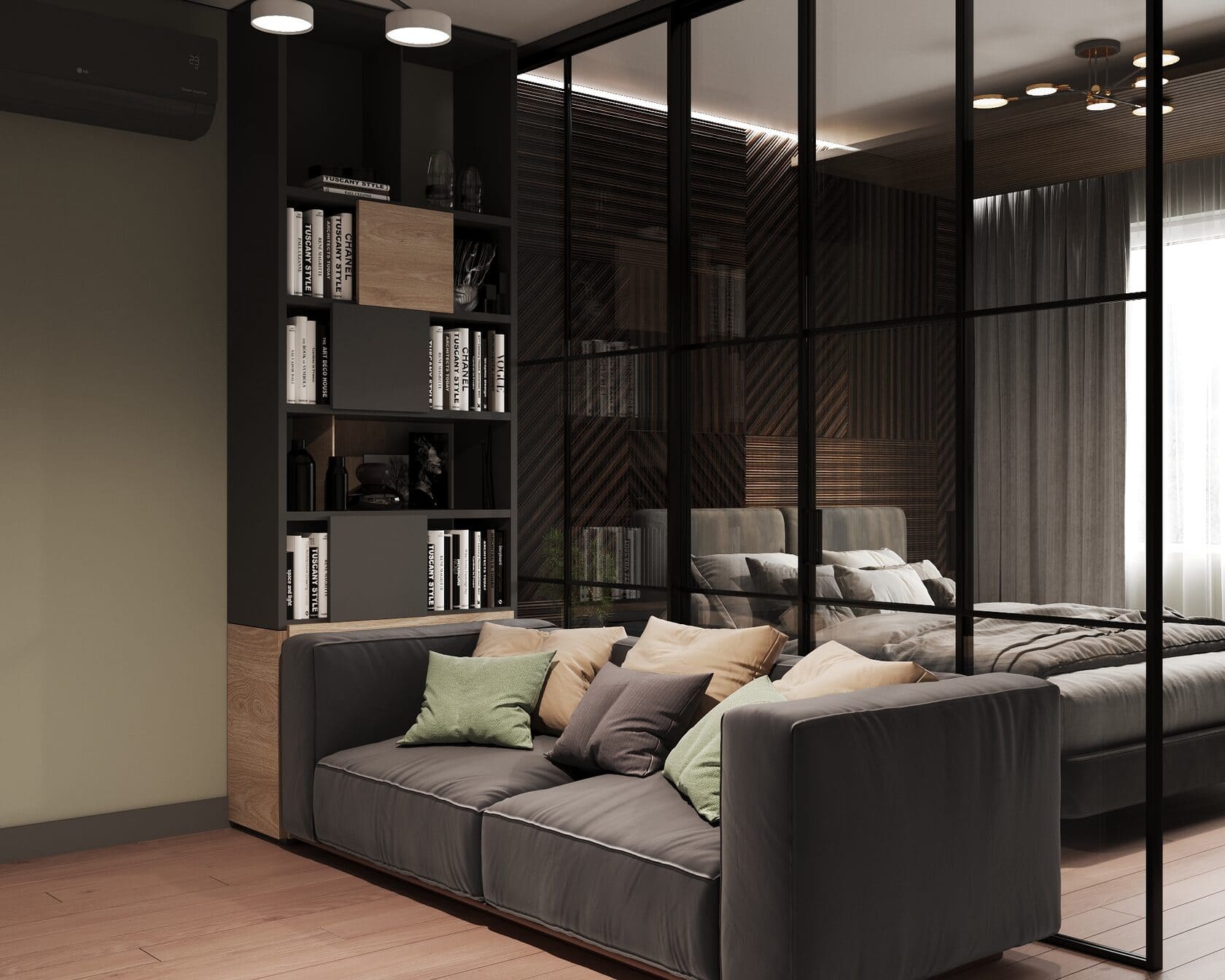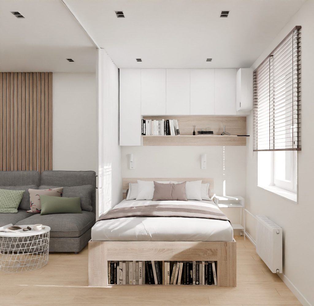 - Дизайн спальни с диваном и спален-гостиных