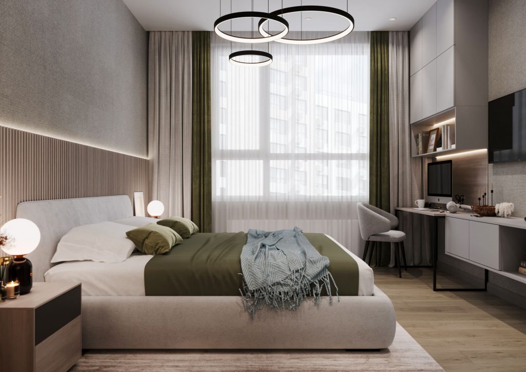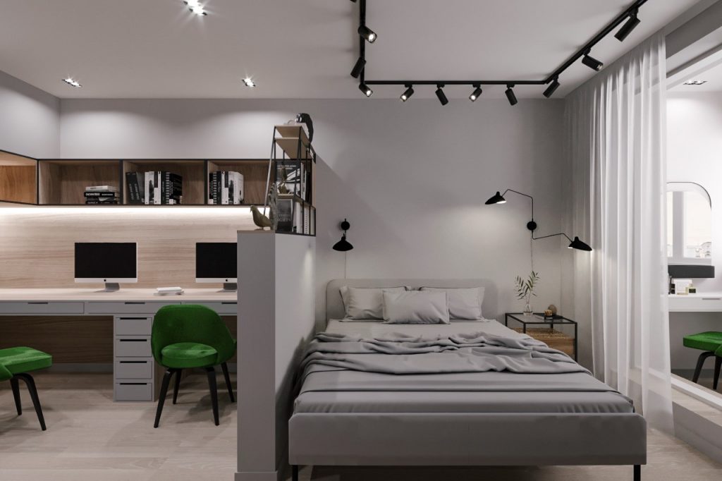 - Дизайн спальни с кабинетом