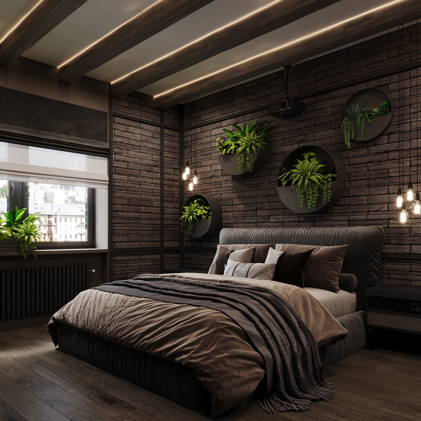 7. Спальни в стиле лофт: фото брутальной элегантности