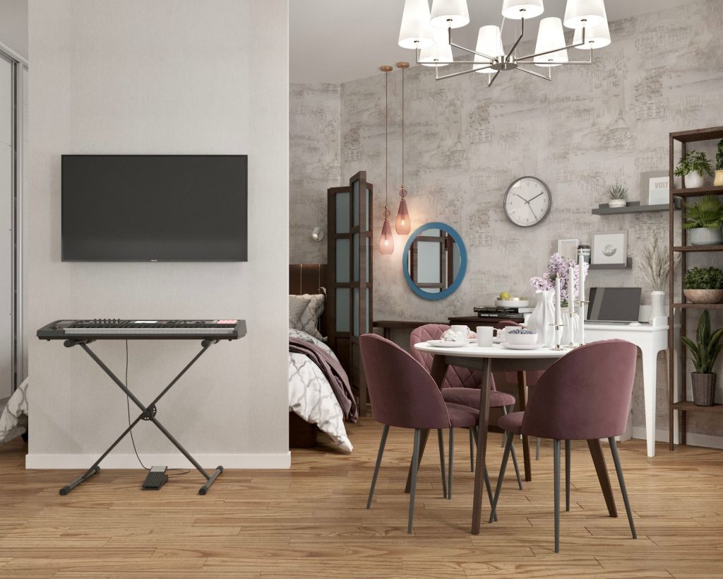 Ламинат без порогов создает цельное пространство, визуально расширяя комнату и добавляя современности.