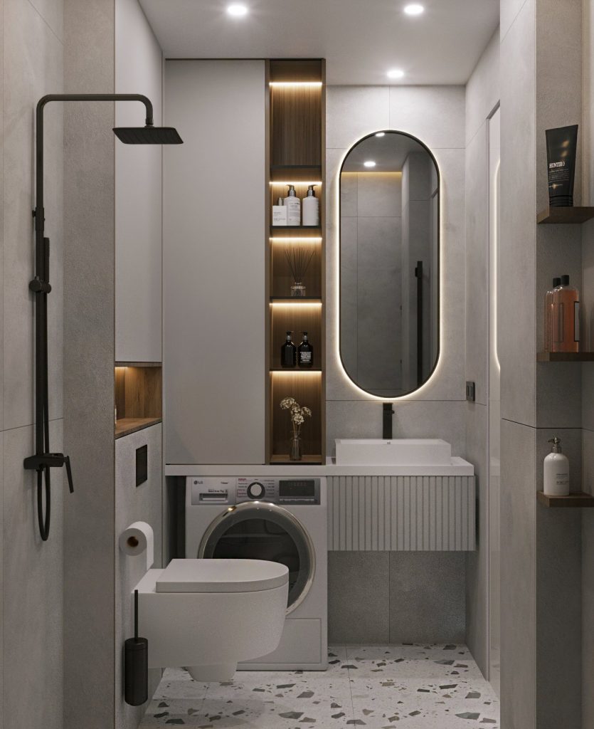 📌 Эти решения помогут сделать даже небольшую совмещенную ванную функциональной и стильной.