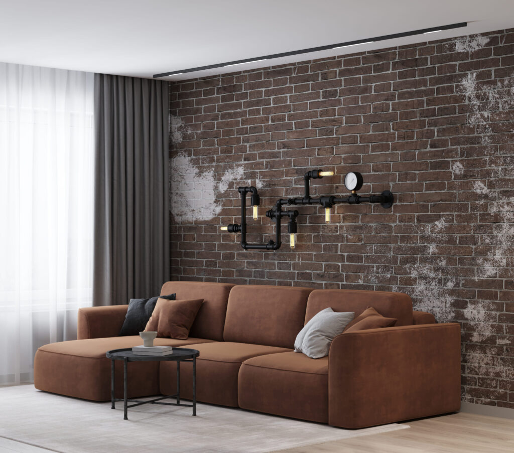 Добавляйте яркие акценты для выразительности. Материалы — только натуральные: кирпич, бетон, металл, дерево. Искусственные покрытия (ламинат, обои) нарушают аутентичность стиля.