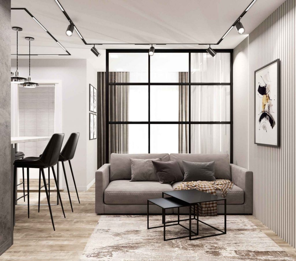 В студии можно комбинировать покрытия (например, кварц-винил в кухне + ламинат в гостиной). Главное — сохранять единую цветовую гамму, чтобы не дробить пространство.