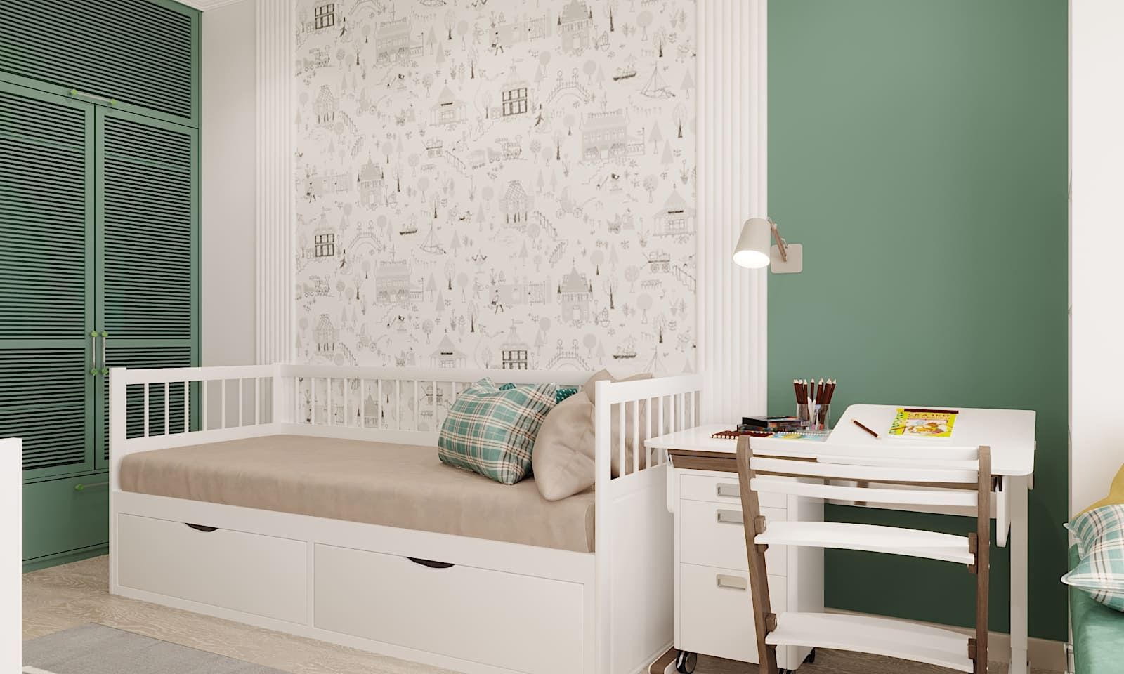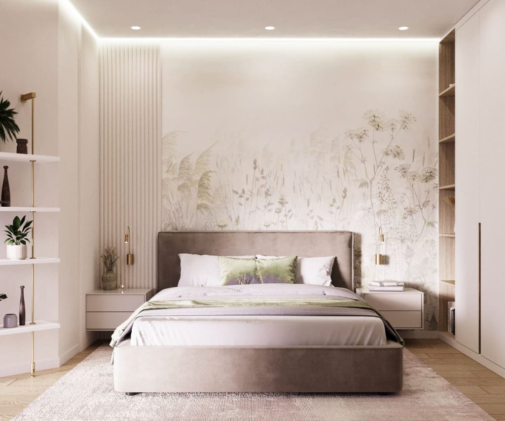 ◾️ Подходящие варианты: бумажные и флизелиновые обои, матовая и полуматовая краска, деревянные панели, пробка, декоративная штукатурка, текстильные покрытия.
