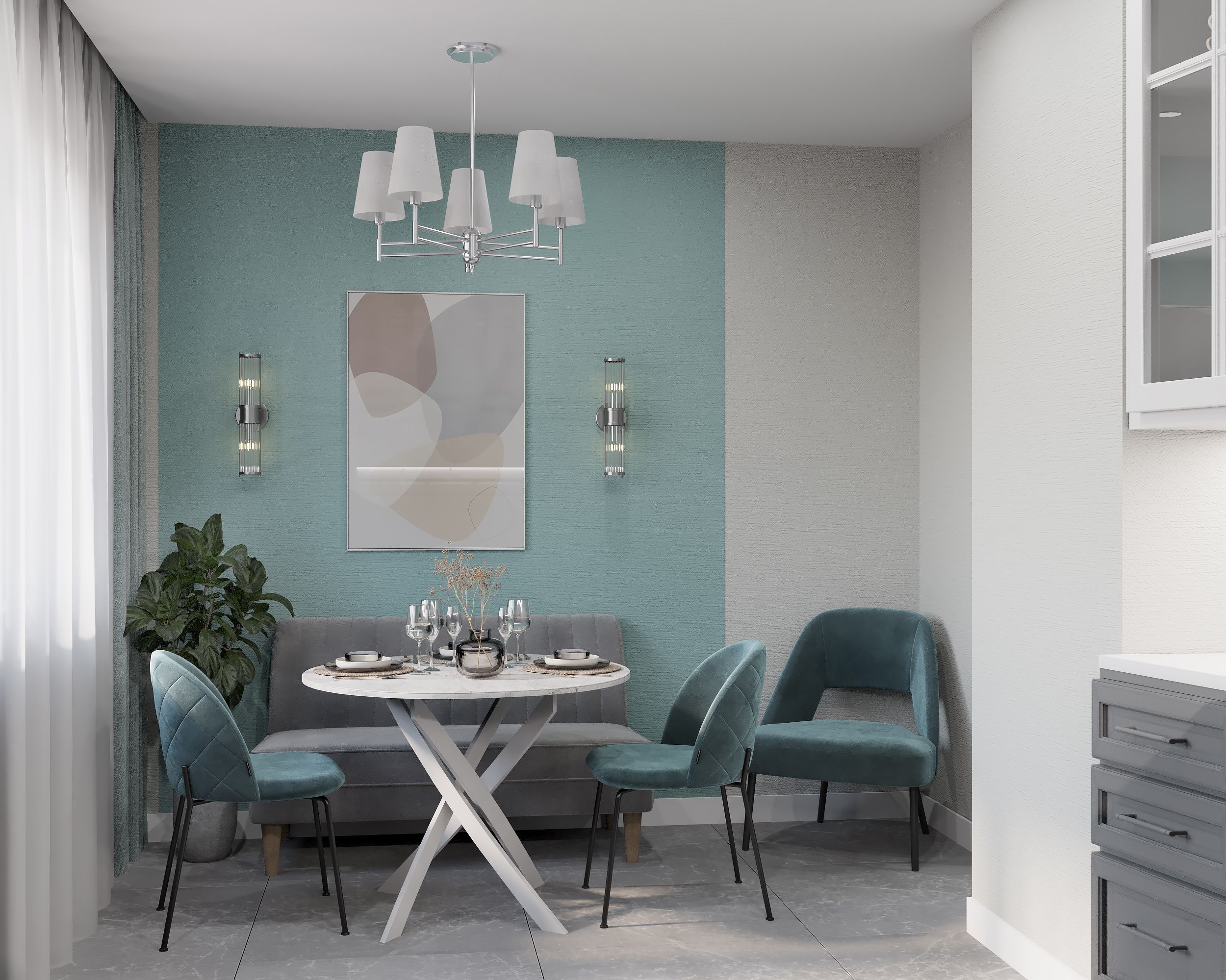➖ Комбинированный способ применения. В некоторых помещениях уместно сочетать материалы, рассчитанные на разные условия эксплуатации. Например, на кухне фартук из плитки сочетается с краской или реечными панелями в обеденной зоне.