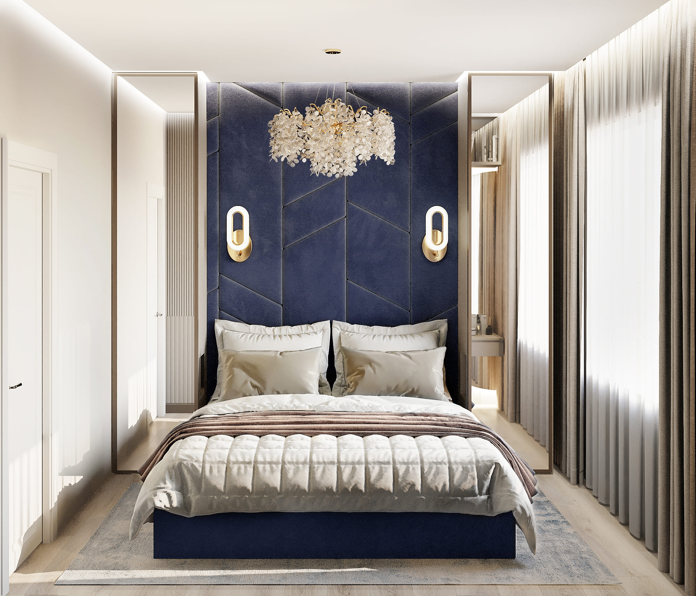 ➖ Для сухих помещений. Сюда относятся спальни, гостиные, детские, кабинеты. Здесь нет высокой влажности и резких перепадов температур, поэтому можно использовать практически любые материалы.