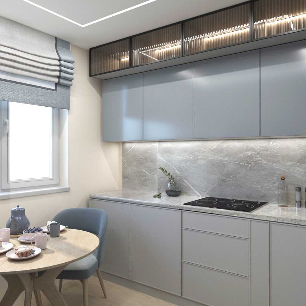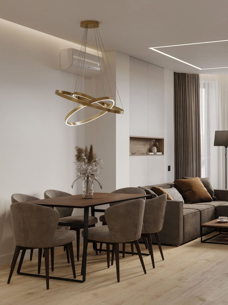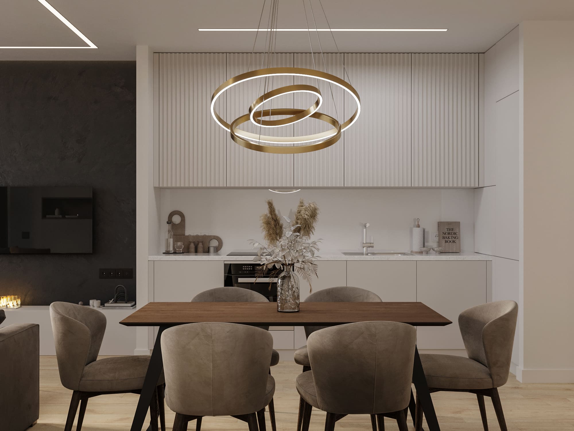 Заказчики – молодая пара. Планировка заказчиков полностью устраивала, мы лишь немного ее поменяли, чтобы расширить коридор и разместить там большой шкаф для вещей. Стиль был выбран классический, с большим количеством декоративных элементов в виде молдингов, панелей и тд. Но при этом достаточно современный благодаря выбранным оттенкам, светлым стенам и современной мебели и светильникам.