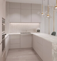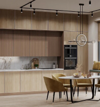 Дизайн вашей кухни разрабатывается в тесном сотрудничестве с дизайнером квартиры, обеспечивая стилевое единство с общей эстетикой интерьера