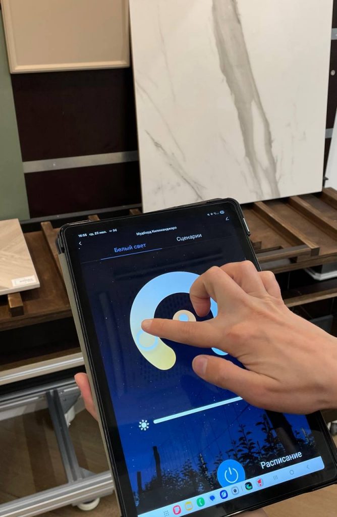 Теперь вы можете наглядно увидеть, как подбираются и крепятся материалы и как меняется восприятие под разным освещением!