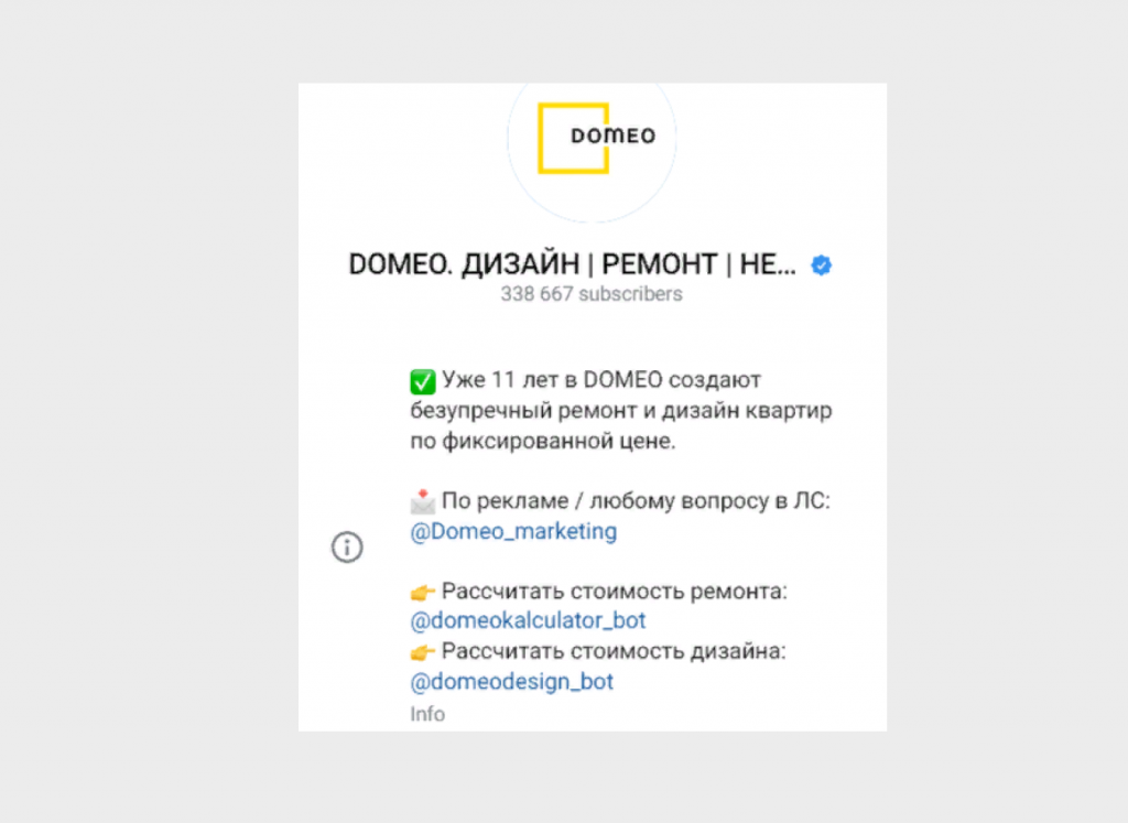 В последнее время стало намного удобнее общаться через Telegram. Domeo хочет всегда быть на связи со своими клиентами, делиться самой полезной информацией и рассказывать о результатах наших работ: именно поэтому мы создали свой телеграм-канал.