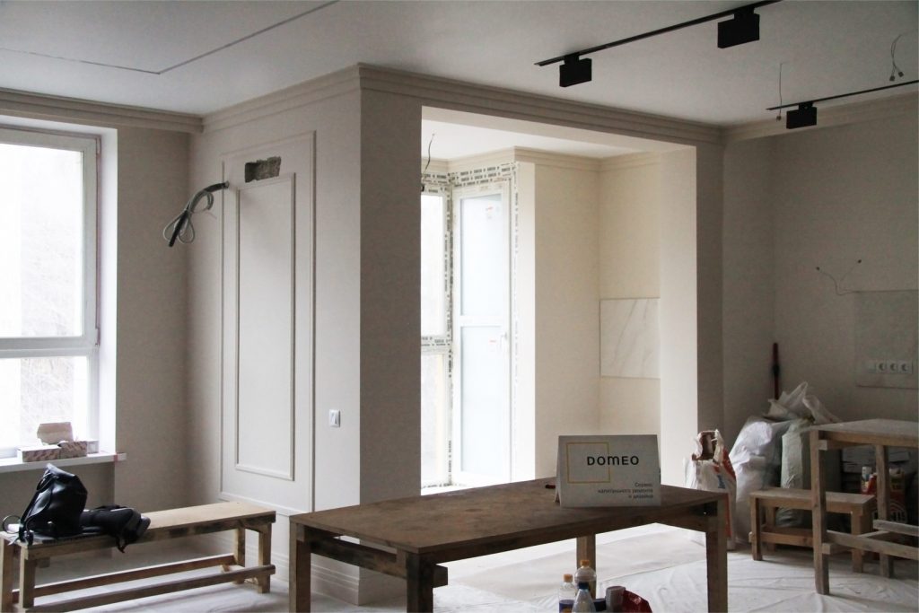 И мы, и хозяева очень довольны результатом: всё выполнено качественно, ровно и аккуратно. Оставляем квартиру коллегам для установки дверей и сантехники, сборки мебели и монтажу акцентного освещения. И – готовимся поздравлять хозяев с новосельем!
