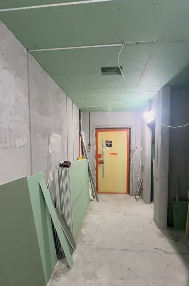 - Огнестойкий гипсокартон (ГКЛО): используется в местах, где требуется повышенная защита от огня, таких как пожарные лестницы, котельные, а также в общественных зданиях и других объектах с повышенными требованиями безопасности. Он содержит специальные добавки, которые замедляют процесс горения, и может быть использован для создания противопожарных барьеров и стен.