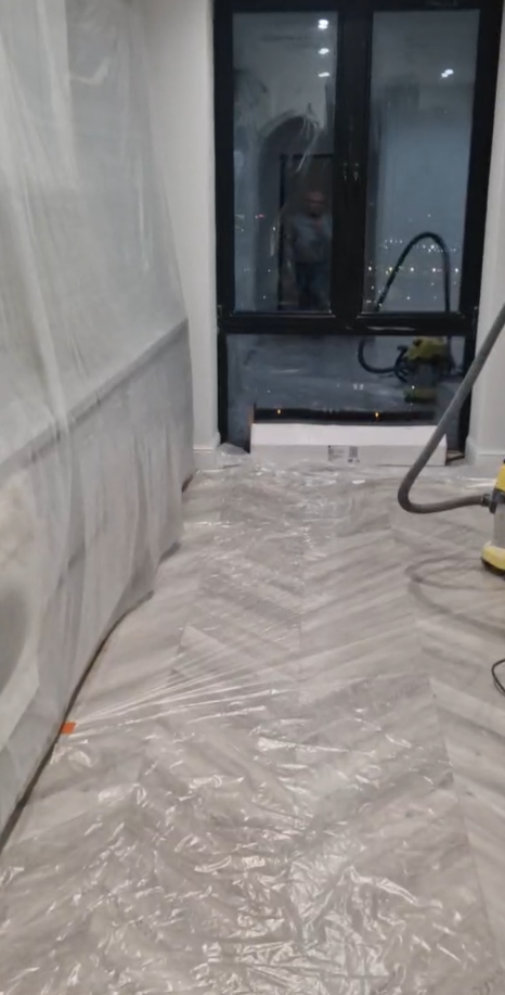 - Подготовка поверхностей: тщательно удаляем старые обои или отслоившуюся краску, очищаем стены от пыли и грязи. Если необходимо, наши мастера шпаклюют стены, выравнивая их и заделывая трещины. Затем мы шлифуем поверхность до идеальной¹ гладкости;