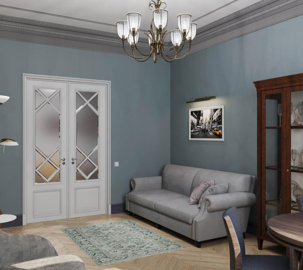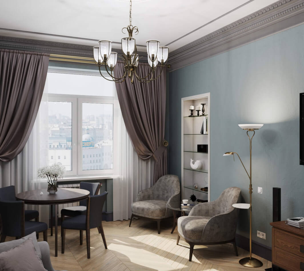 Отправной точкой в создании дизайн-проекта для семейной пары со взрослой дочерью стали интерьеры домов парижских бульваров барона Жоржа Османа, головокружительные перспективы римских улочек с выходами на аркадные площади и большая любовь всей семьи заказчиков к холодным оттенкам. В обстановке квартиры органично сочетается респектабельная классика и статусный современный стиль