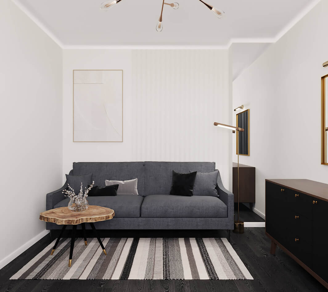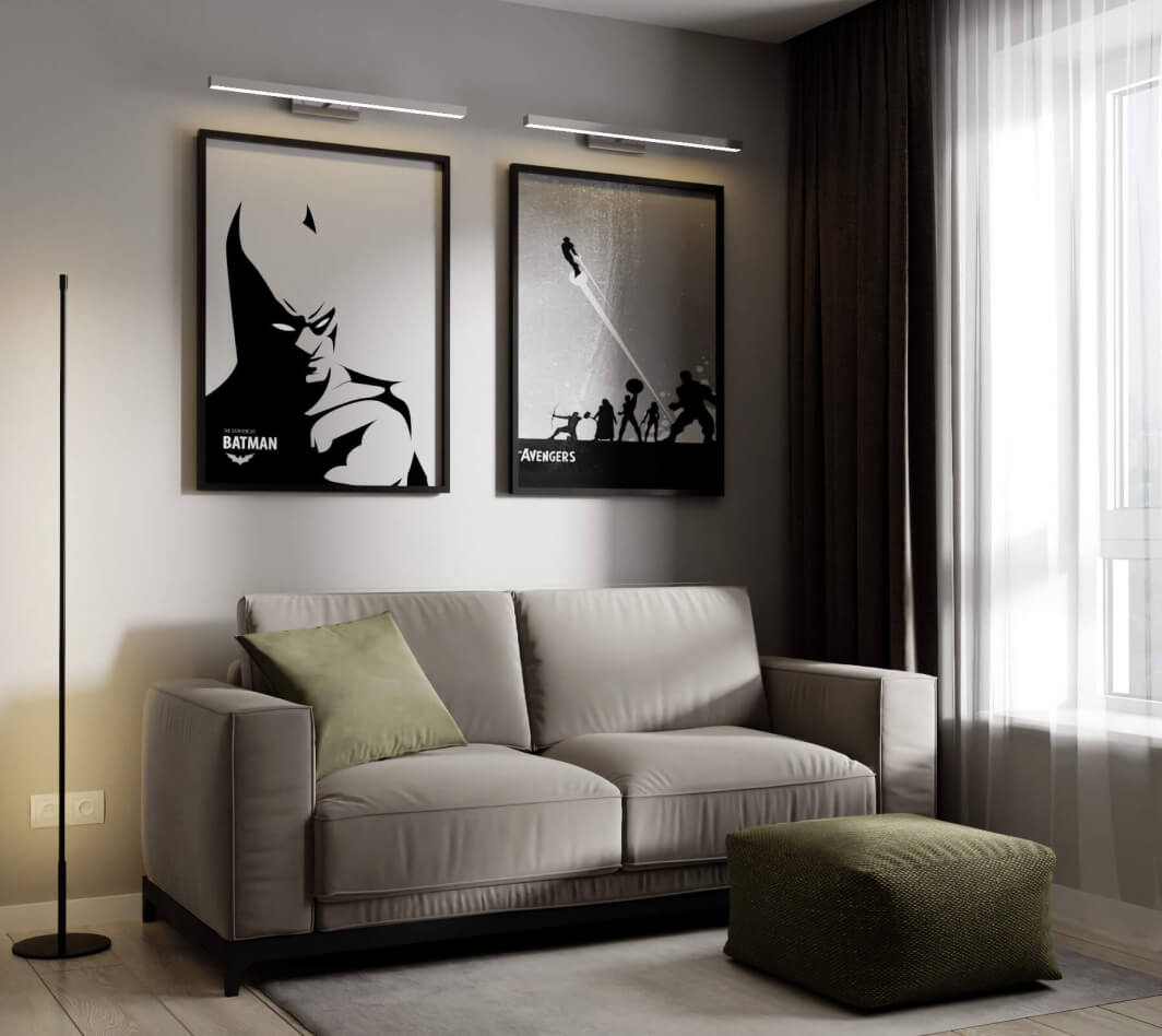 Жилое пространство для молодой активной семьи с двумя малышами и собакой. В основу идеи минималистичного современного интерьера легло сочетание простых форм и фактур и сложных оттенков