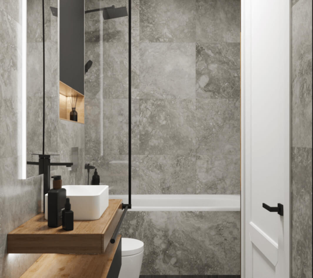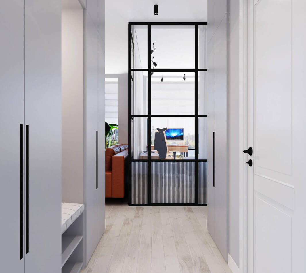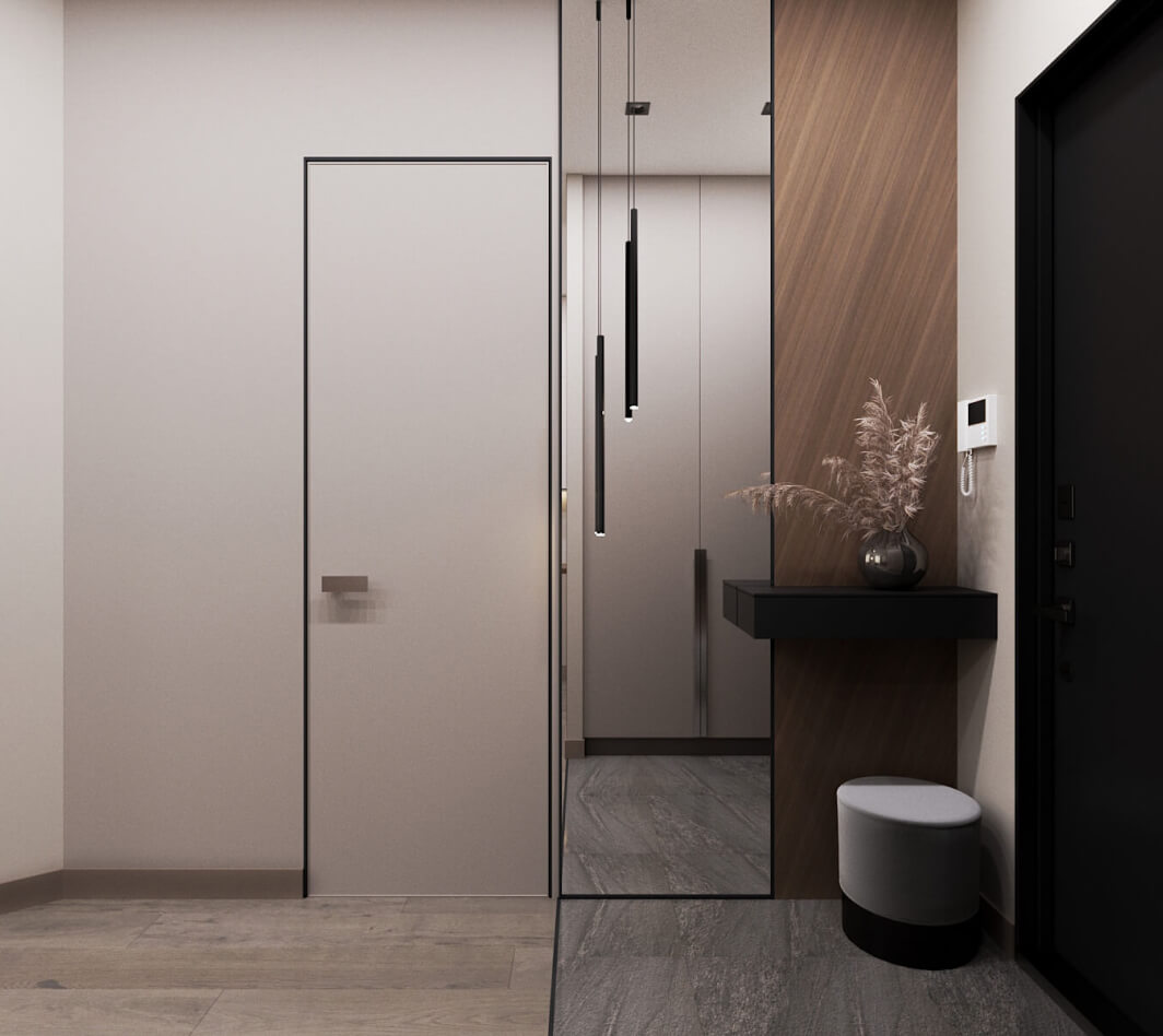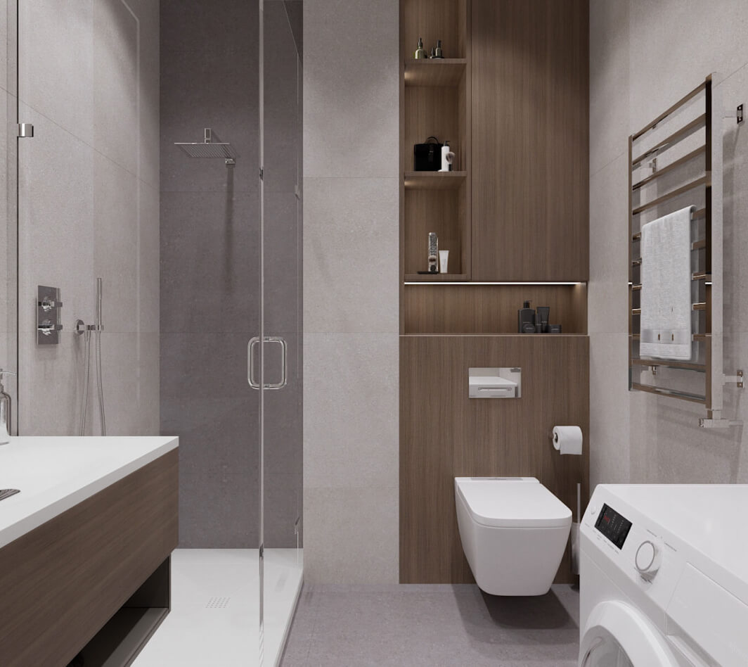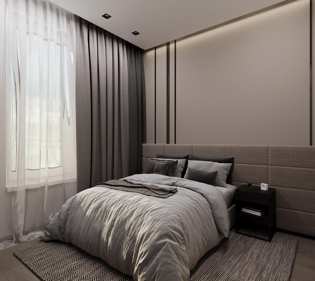 Стиль минимализм один из самых сложных, потому что здесь довольно не просто уравновесить элементы дизайна между собой, не прибегая к каким-то ярким цветам или привлекающим внимание контрастным элементам дизайна. Белая, бежевая, серая гамма – как и просил заказчик. Использование не ярких и активных текстур на полу и стенах — не нагружают пространство, но и не оставляют «плоскими» стены и пол