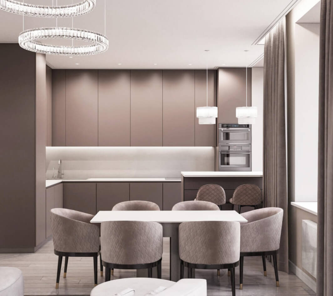 Интерьер этой новосибирской квартиры – по-настоящему элегантный, не перегруженный декоративными деталями, лаконичный, но и не слишком строгий. Классические пропорции, благородные цвета помогают ему выглядеть не помпезно, а изысканно
