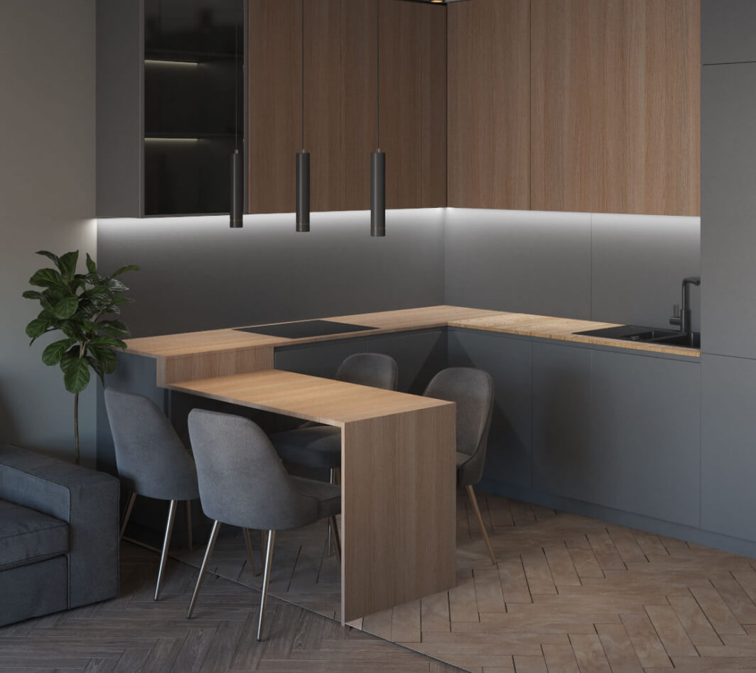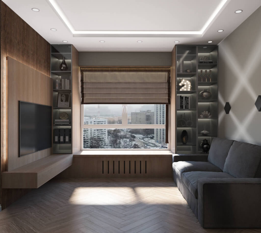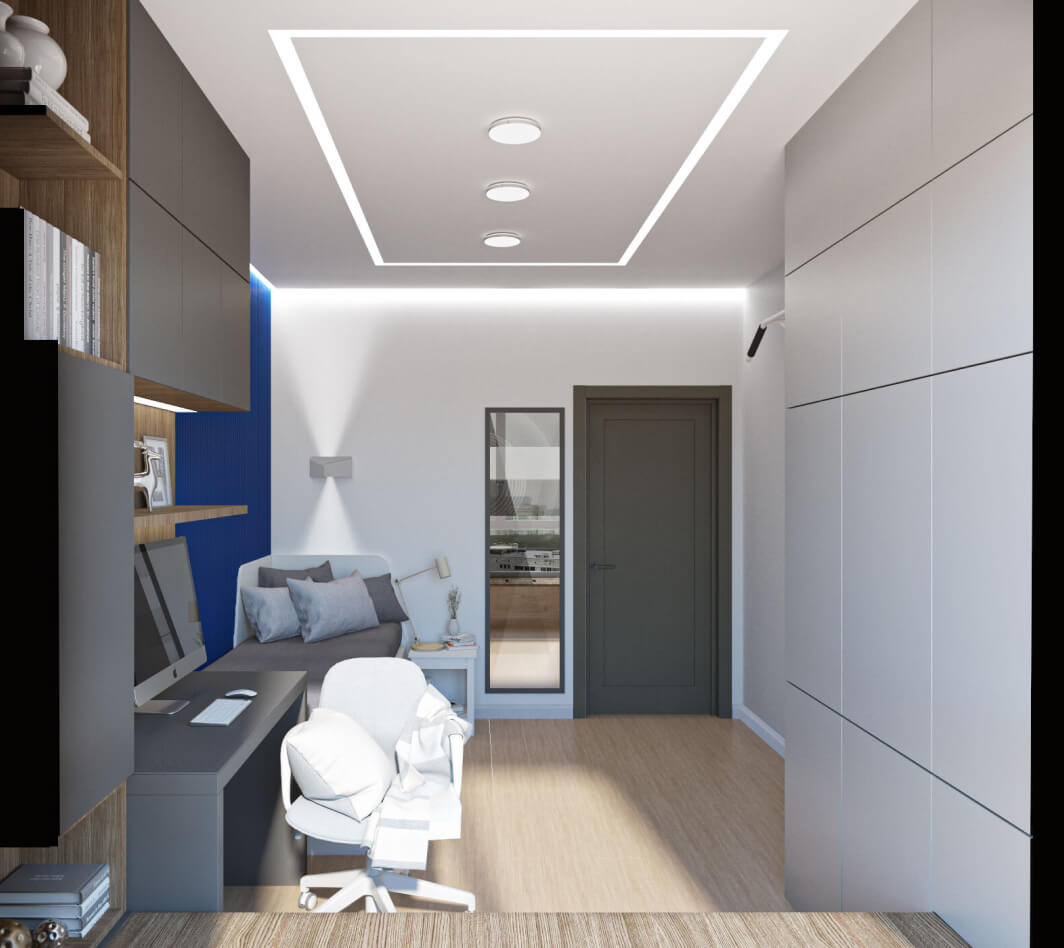 Это дизайн-проект квартиры для семьи из трех человек: мамы, папы и сына школьника. Наши постоянные заказчики, для которых мы разработали не один интерьер, в том числе офисных помещений, обратились с просьбой создать атмосферу в фирменном стиле DOMEO