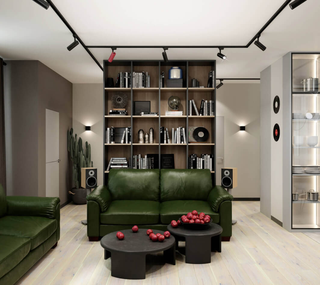 Клиенты вдохновились интерьером, который мы делали для себя, и попросили создать похожий для них. Нашей задачей было создать в трёхкомнатной квартире место для разносторонних интересов хозяев, сделать дизайн сдержанным, но не скучным