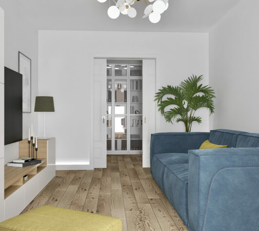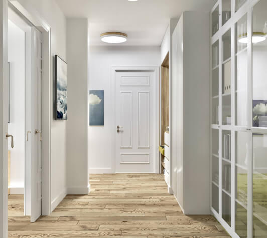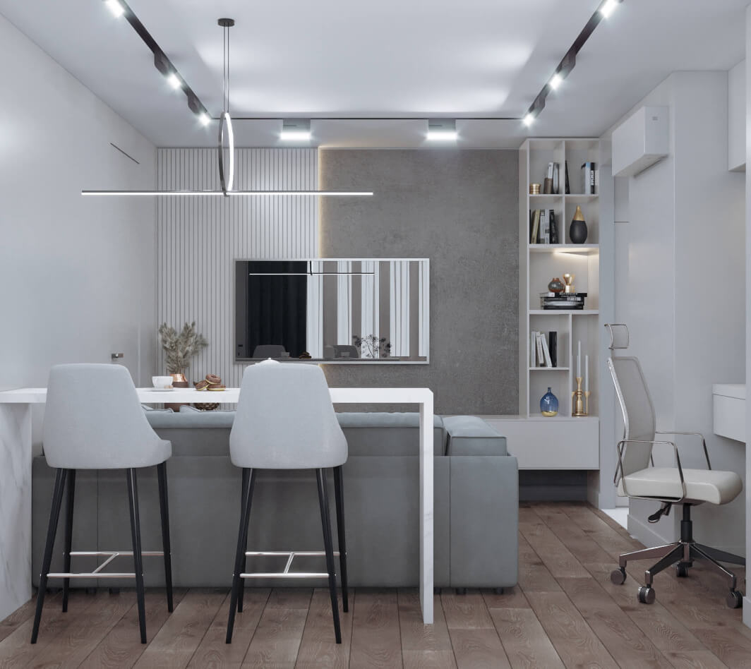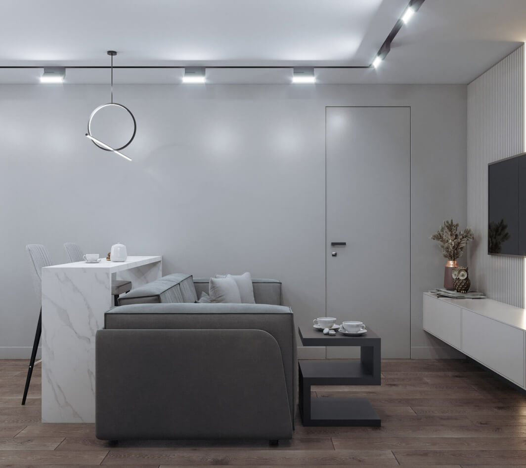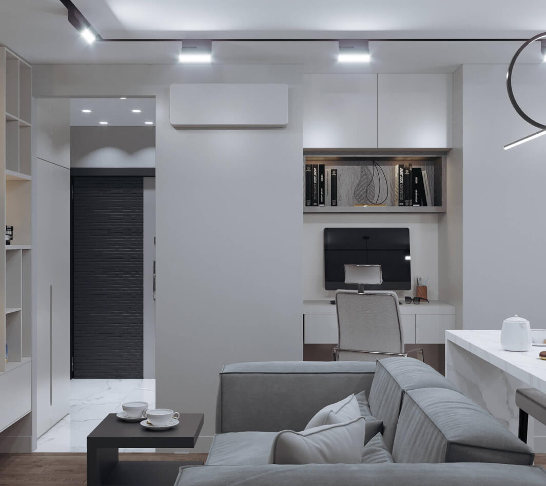 Перед владельцами данной квартиры стояло две важных задачи: во-первых, максимально сэкономить пространство, а во-вторых – не допустить присутствия в помещении вещей, свидетельствующих о том, что их некуда деть. Благодаря огромному опыту нашего дизайнера на этом проекте, мы закрыли эти две задачи на максимум