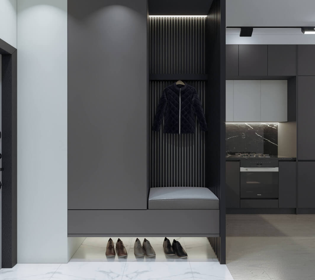 Особенность этой квартиры заключается в ее функции – хозяева будут использовать ее для временного пребывания, как свой собственный роскошный отель. Как и полагается всем отелям класса люкс, акцент был сделан одновременно на выдержке единого стиля и на функциональности и комфорте