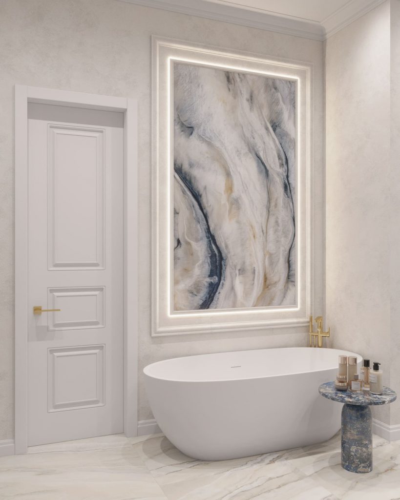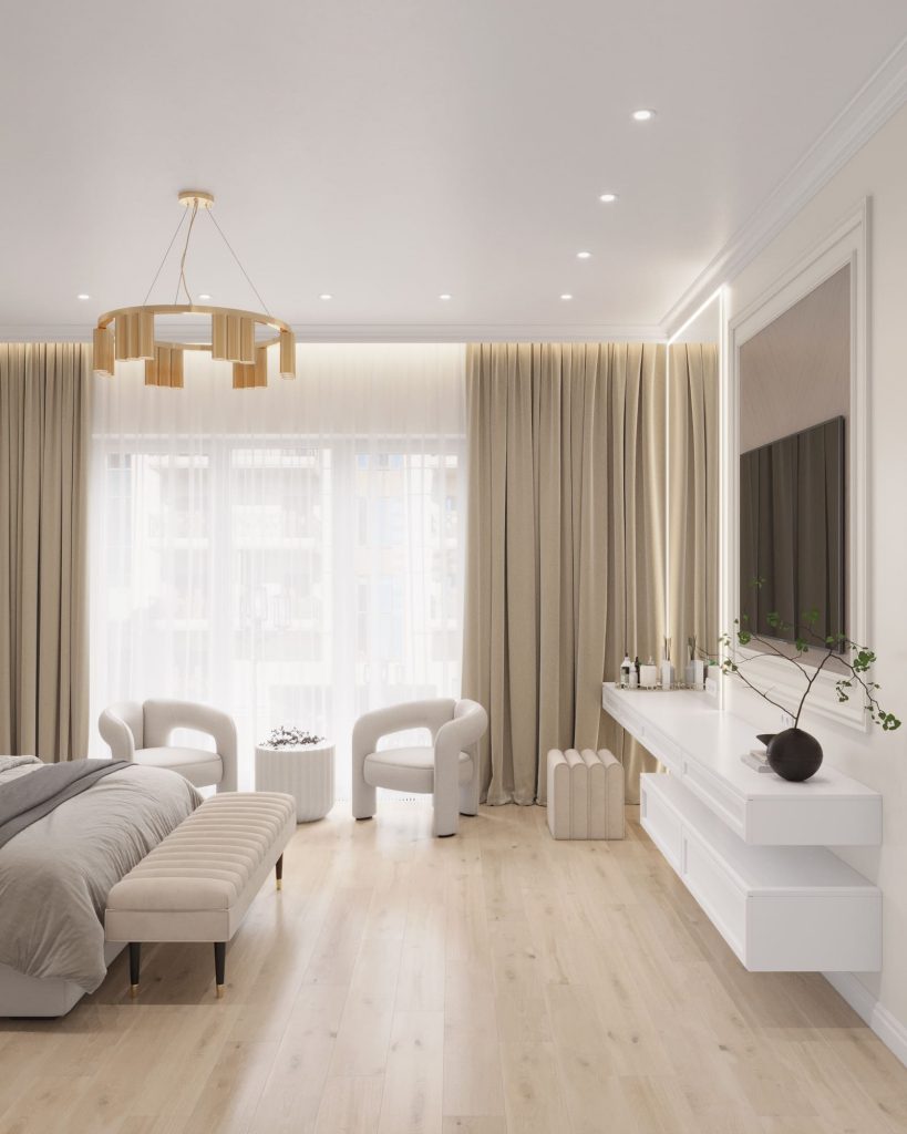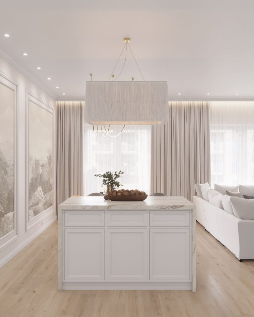 Минималистичный дизайн-проект квартиры в центре Москвы с просторные комнатами, функциональной планировкой и стильным интерьером с пастельными акцентами
