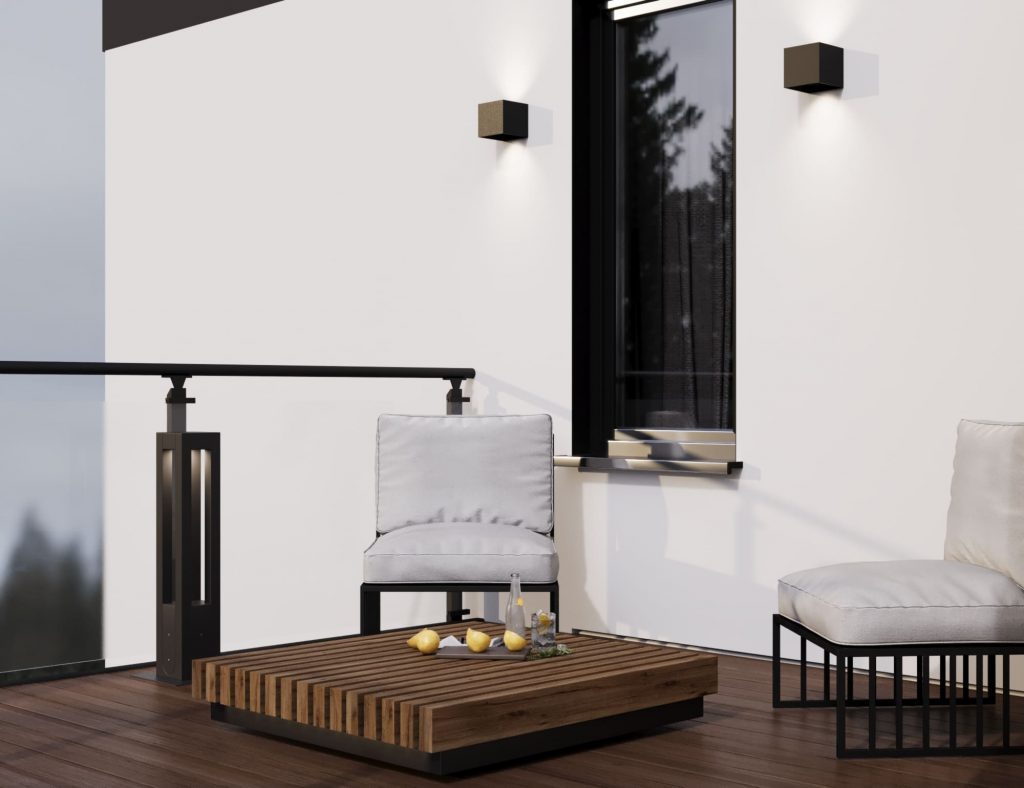 Балкон оформлен очень минималистично - там лишь два больших кресла и реечный стол - традиционный лофт, навевающий настроение испанских уютных патио своей белизной, контрастными чёрными и древесными акцентами и лаконичностью. Подчеркивают это сходство и атмосферные светильники-бра.