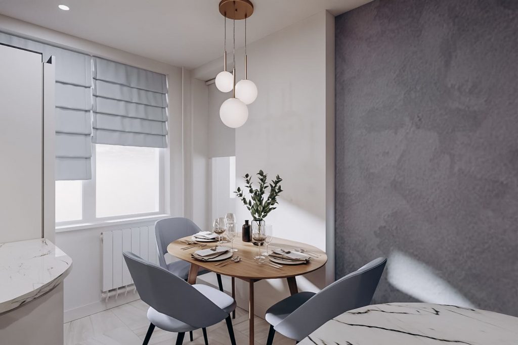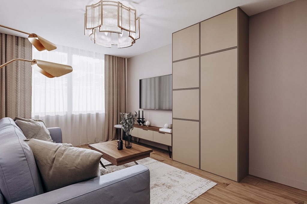 Дизайн-проект двухкомнатной квартиры в брежневке с интерьером преимущественно в серых тонах