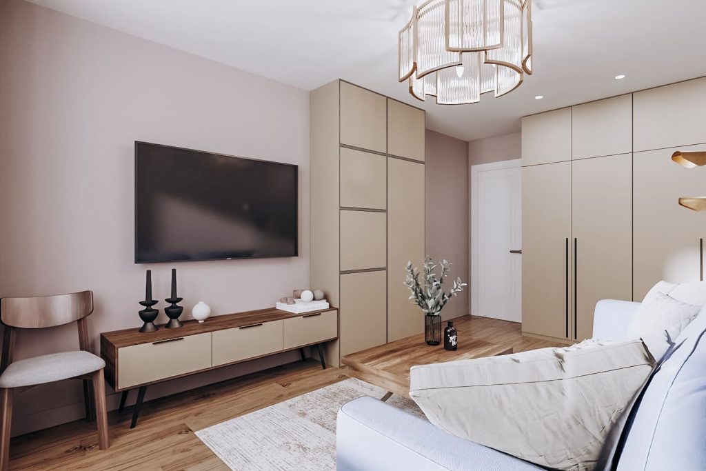 Этот интерьер – пример того, как можно вдохнуть новую жизнь в пространство, не меняя его планировку. Расположенная в доме эпохи брежневок, она сохранила свою функциональность, но приобрела обновленный, современный облик. Основой дизайна стали любимые оттенки заказчика – бежевые, коричневые и оттенки синего.