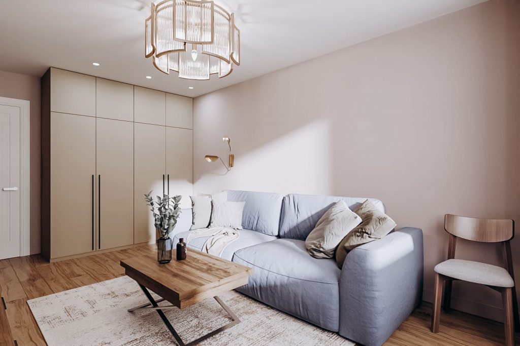Светлая квартира в бежевых и синих оттенках в современном стиле