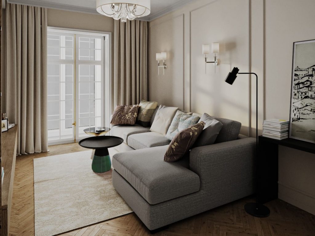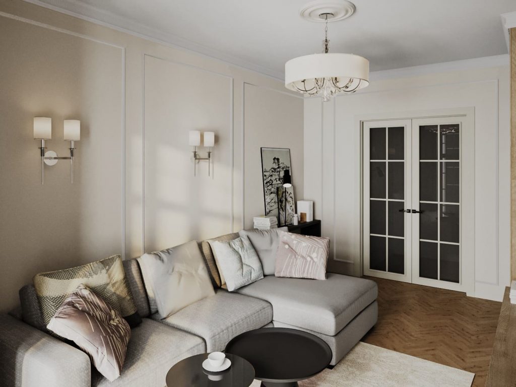 Квартира в сталинке для семьи в светлых оттенках с пастельными акцентами