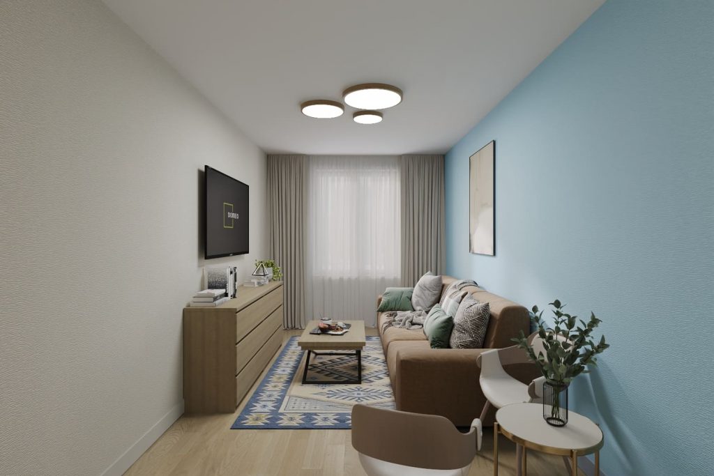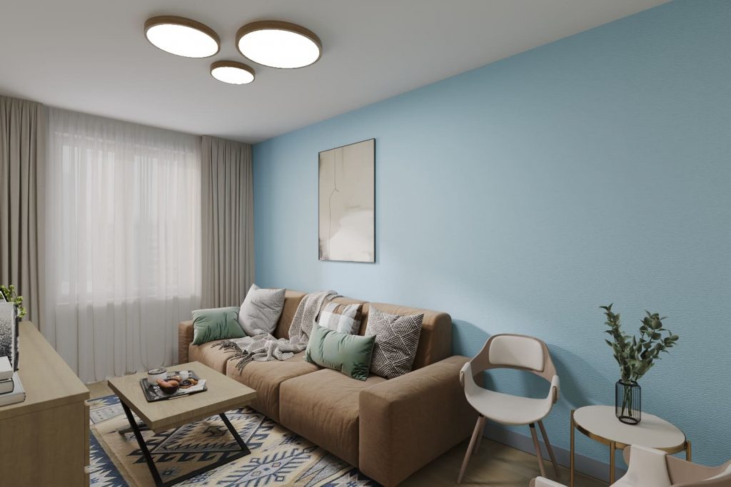 Поскольку квартира расположена в панельном доме с газом, планировку решили не менять, что позволило избежать сложностей с согласованием. Вместо этого дизайнеры сосредоточились на создании гармоничного интерьера, в котором объединяются современная простота и средиземноморская легкость.