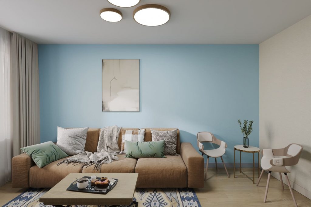 Квартира в средиземноморском стиле в голубых, песочных и оливковых оттенках
