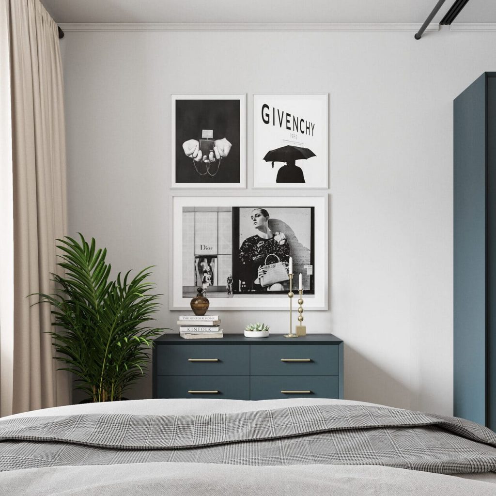 Уютная квартира в стиле современная неоклассика с акцентами глубокого синего