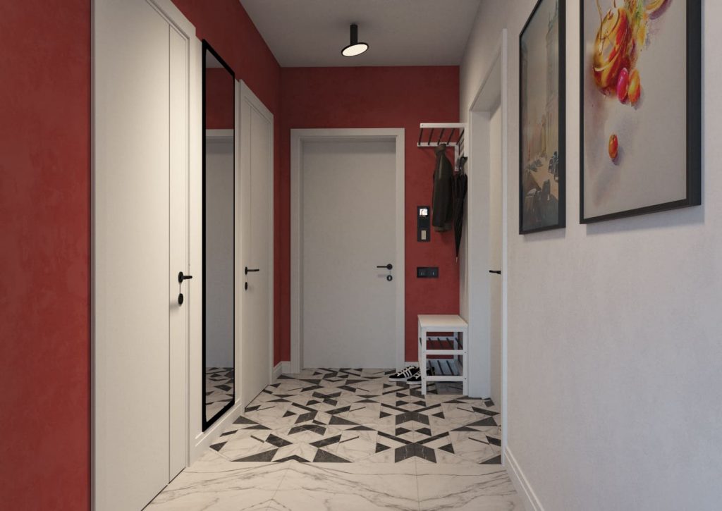 Для молодого человека, ценящего красоту и порядок, прихожая была спроектирована с акцентом на визуальное увеличение пространства и функциональность. Шкаф-купе с зеркальными дверями не только украшает пространство, но и служит практичной цели, делая прихожую визуально более просторной. Зеркало на фасаде, помимо декоративной функции, играет ключевую роль в «раскрытии» интерьера. Скрытые системы хранения, такие как встроенные полки и вешалки, поддерживают чистый, минималистичный вид, что особенно важно для сохранения порядка в доме.