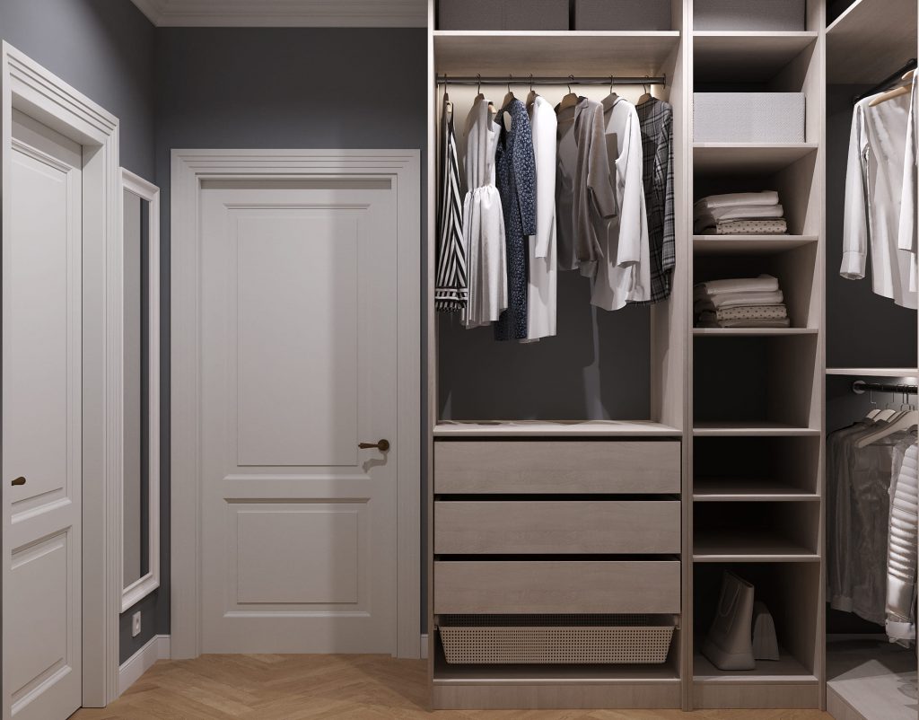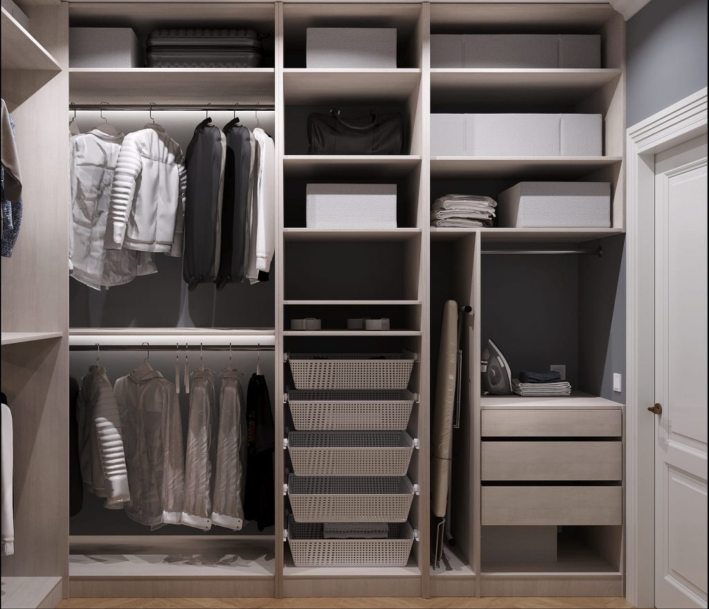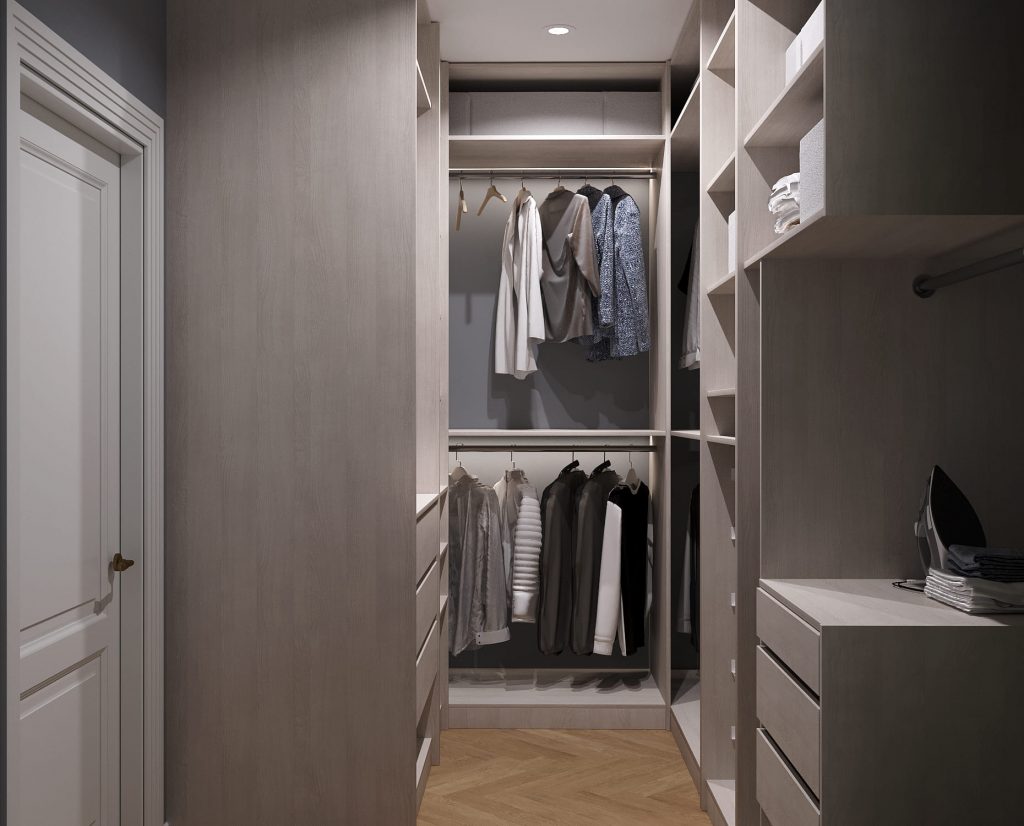 Зная, насколько наши клиенты ценят порядок и удобство, мы спроектировали гардеробную, которая удовлетворит даже самого требовательного перфекциониста. Просторные открытые и закрытые секции позволяют удобно разместить как повседневную одежду, так и особые наряды.