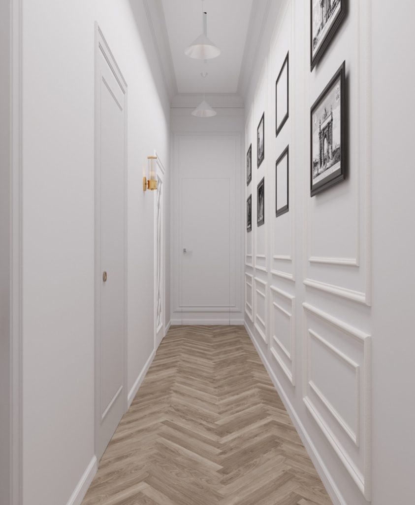 Заказчики — молодая пара, творческие личности, ценящие функциональность и изысканный дизайн. Они обожают путешествия и искусство, что вдохновило нас на создание прихожей, которая встречает гостей элегантностью и теплотой. Мы учли их пожелание к классическому стилю и добавили шкафы с молдингами, придающими глубину и завершённость пространству.