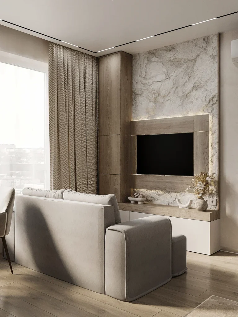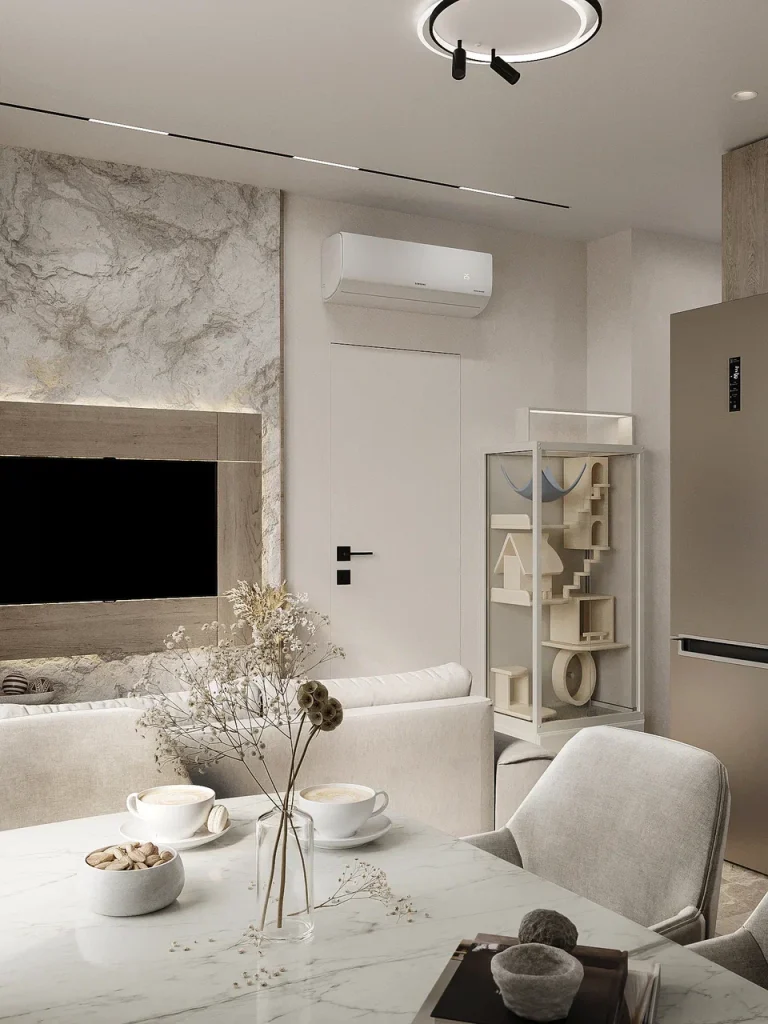 Квартира в современном стиле с уклоном в минимализм в бежевых тонах