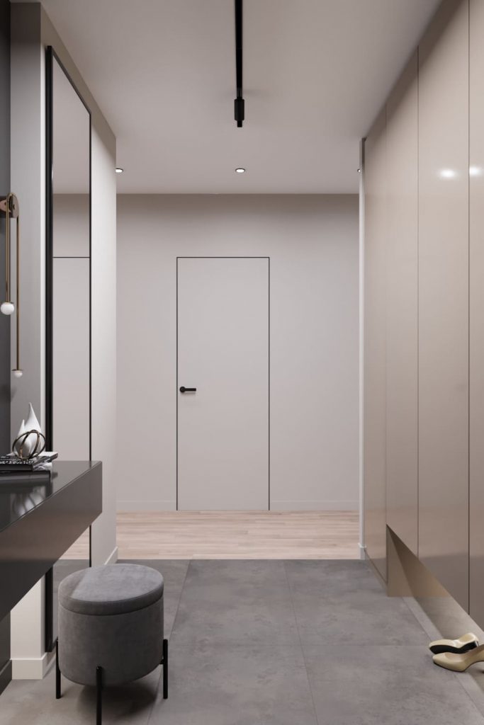 Зеркало в полный рост визуально расширяет прихожую и делает пространство более светлым.