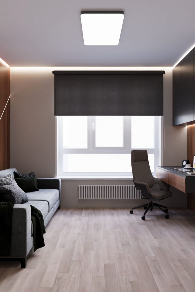 Минималистичная и комфортная квартира для удалённой работы в монохромных оттенках
