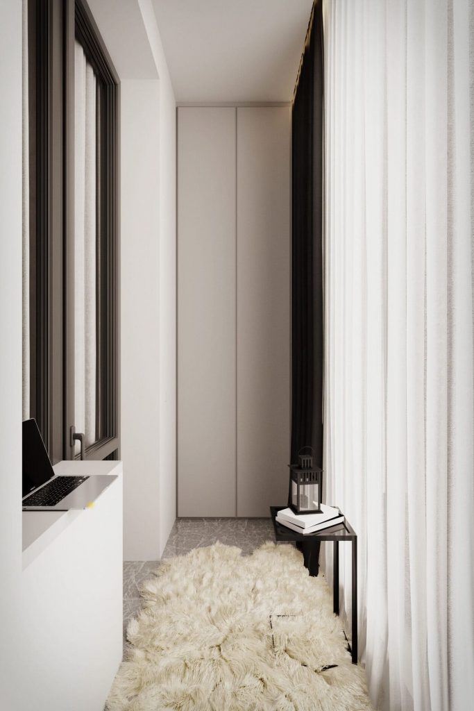 На подоконнике предусмотрено место для ноутбука — и вот уже балкон легко превращается в мини-кабинет с видом.